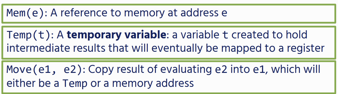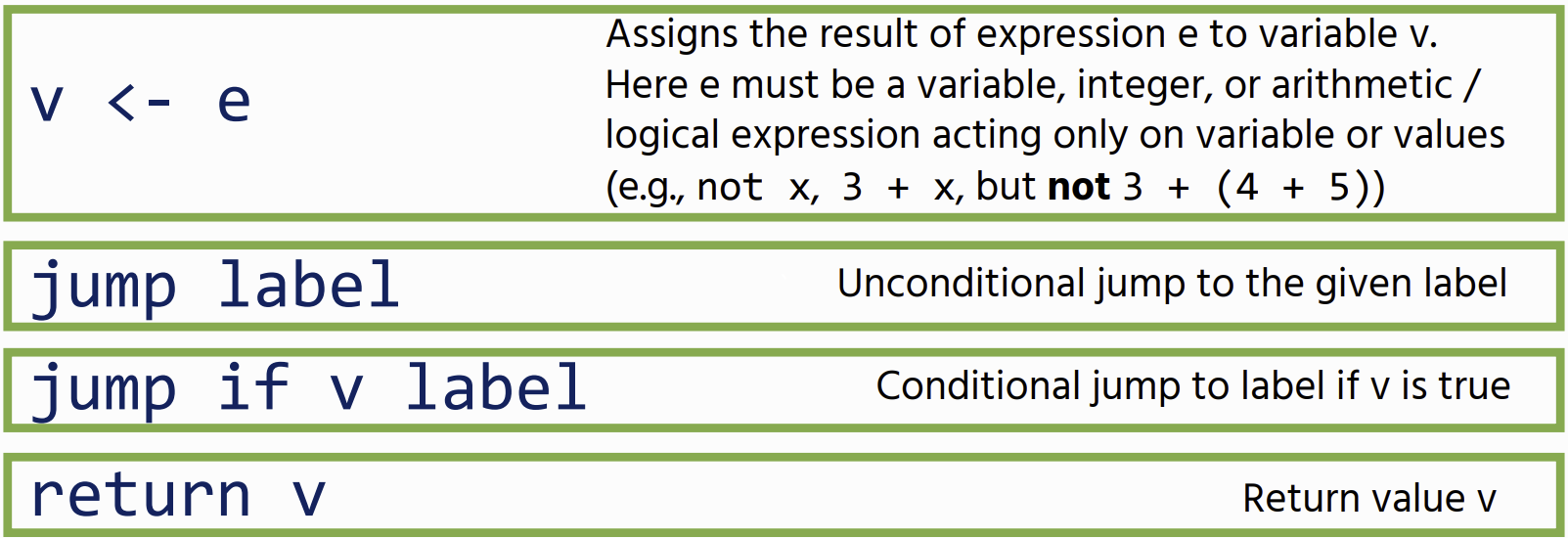 - Statements: these perform side-effects labels: these are program locations that we can jump to
