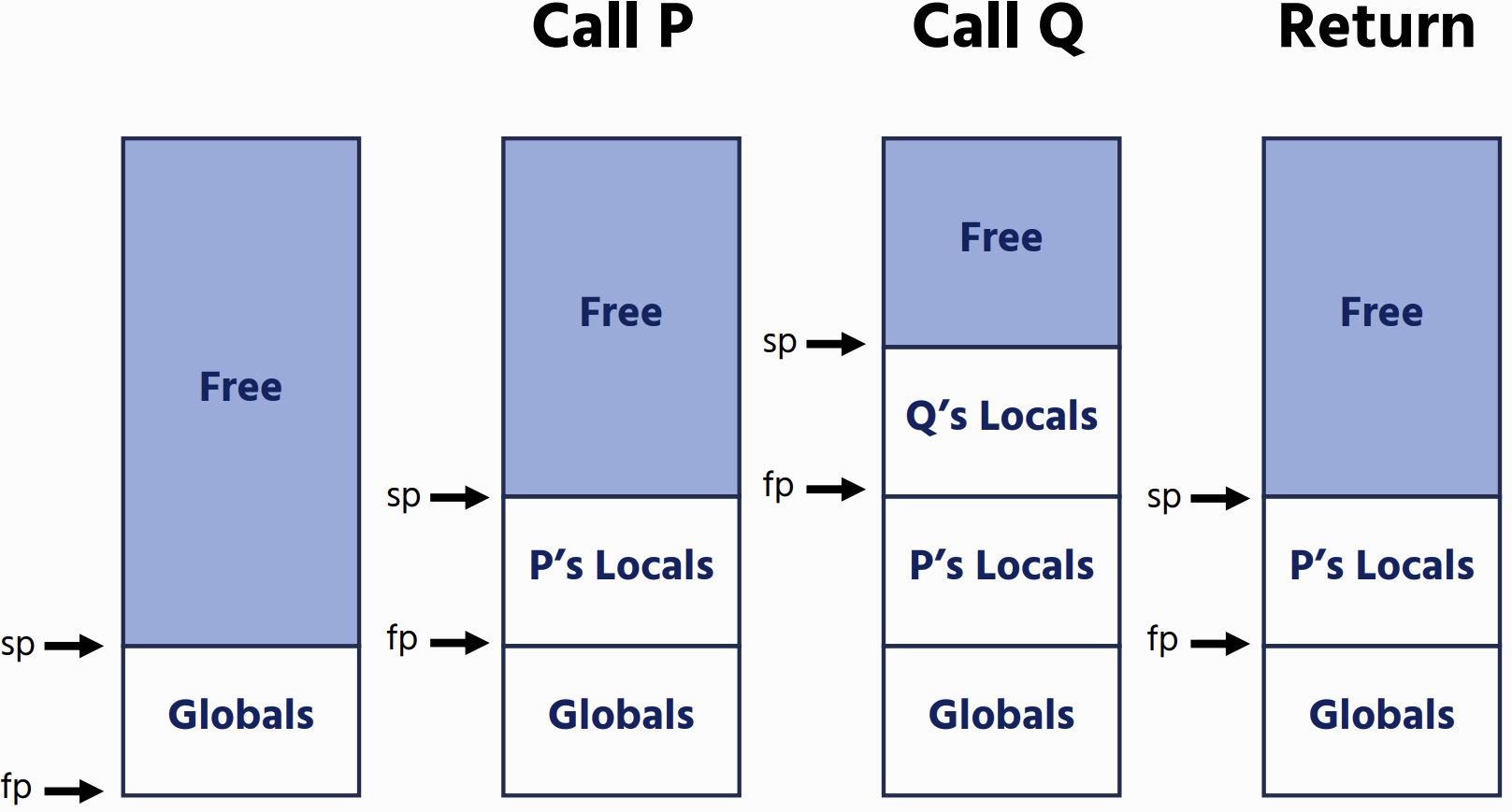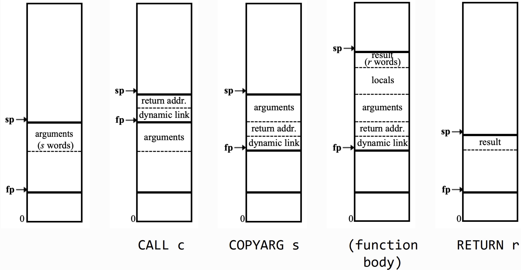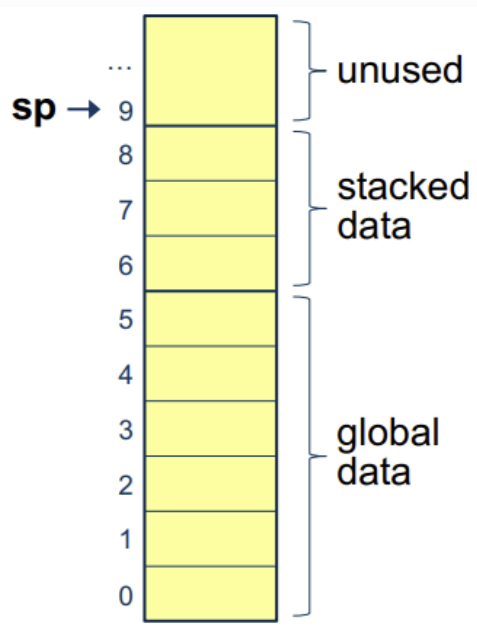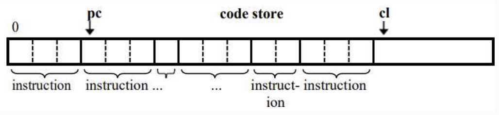 - A code limit (cl) that marks the end of the code store