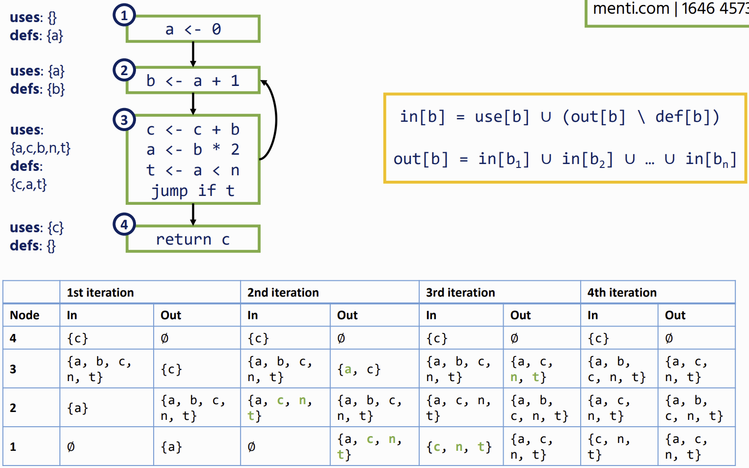 Liveness in a Control-Flow Graph