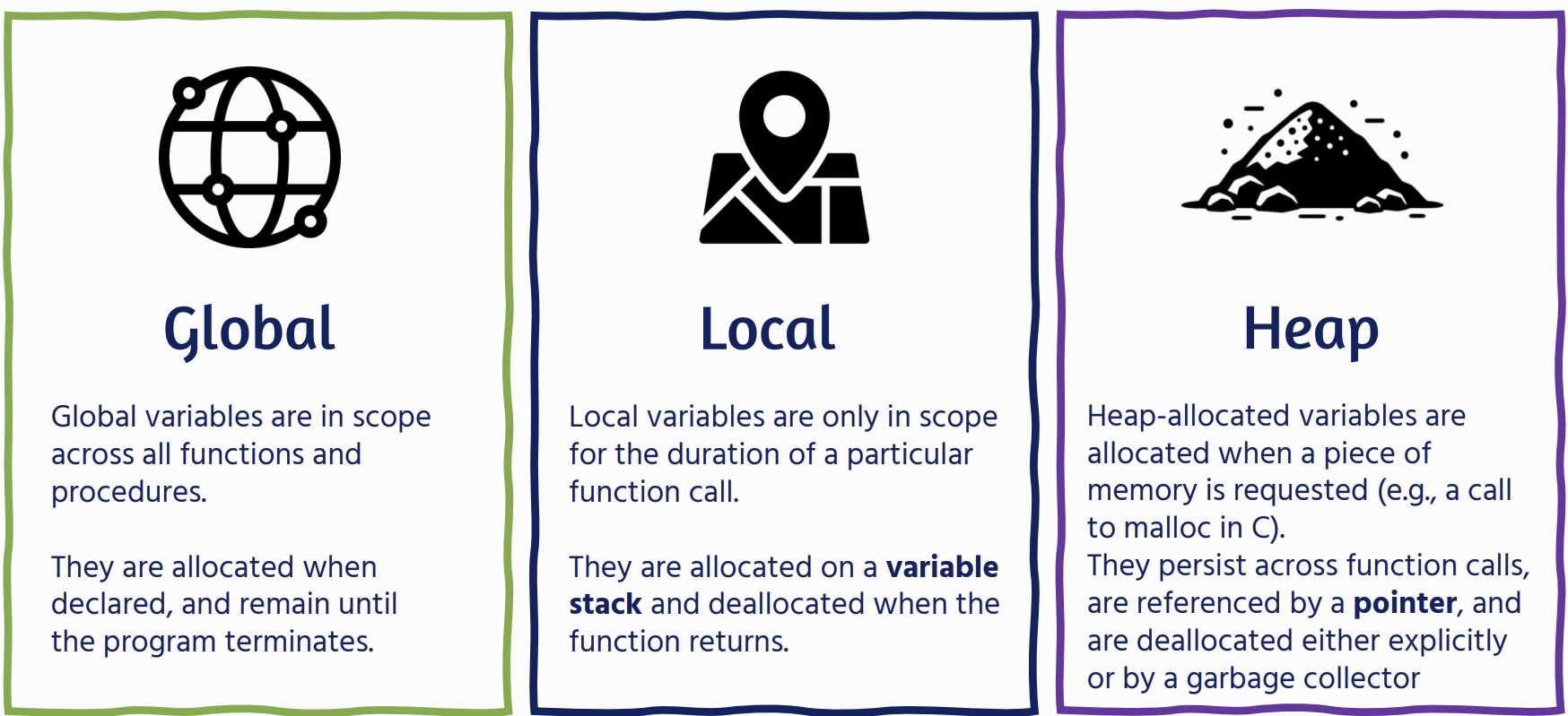 Whenever we declare a variable, we store its address in an address table Each address is associated with a locale: