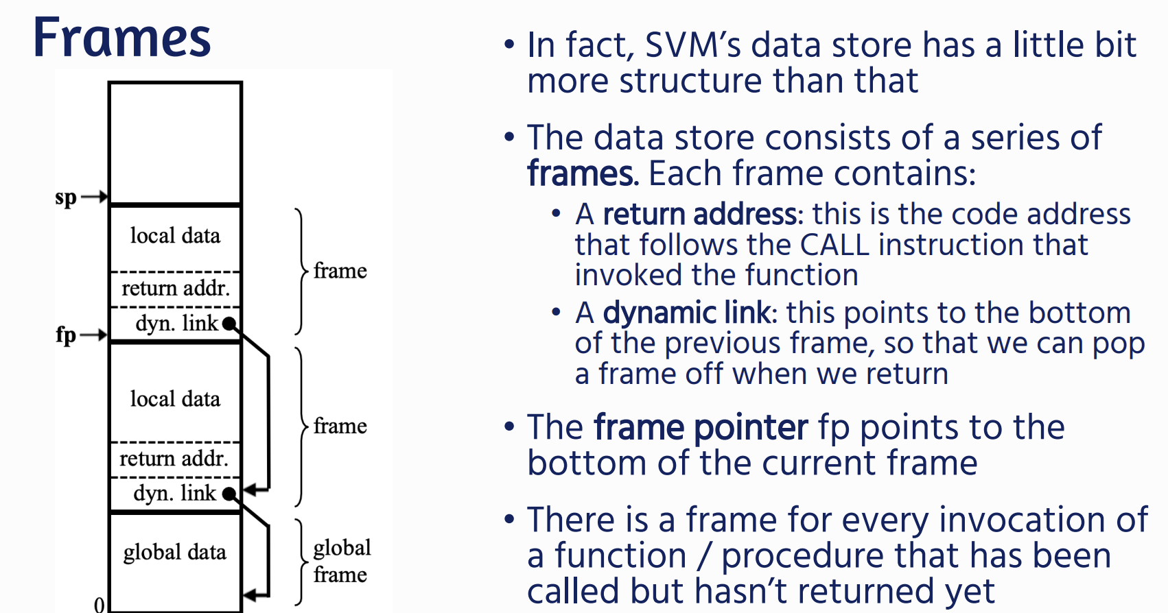 | SVM state is a data store containing the program’s data - A stack pointer (sp) that denotes the top of the stack, some data that occurs on the stack, and then global data. - A status register that indicates whether the program is running, halted, or failed. | ![]() |