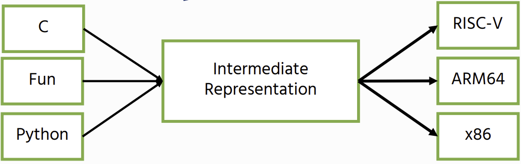 - Common backend: multiple (quite different) languages can target the same backend