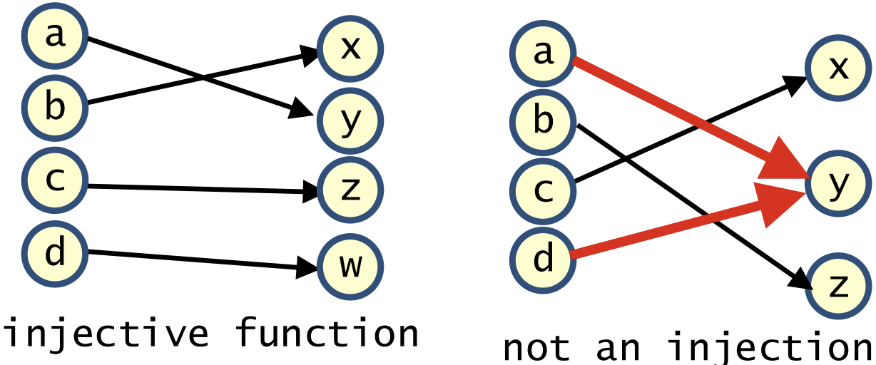 consider the function is strictly increasing if , then is strictly decreasing if , then !! A strictly increasing/decreasing function must be injective